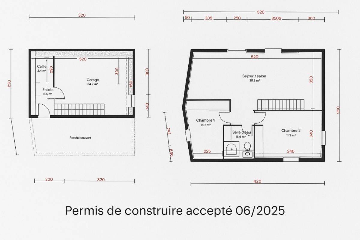 Un permis de construire (juin 2025) autorise l’aménagement et l’extension du bâti existant en logement d’environ 85 m² avec garage.