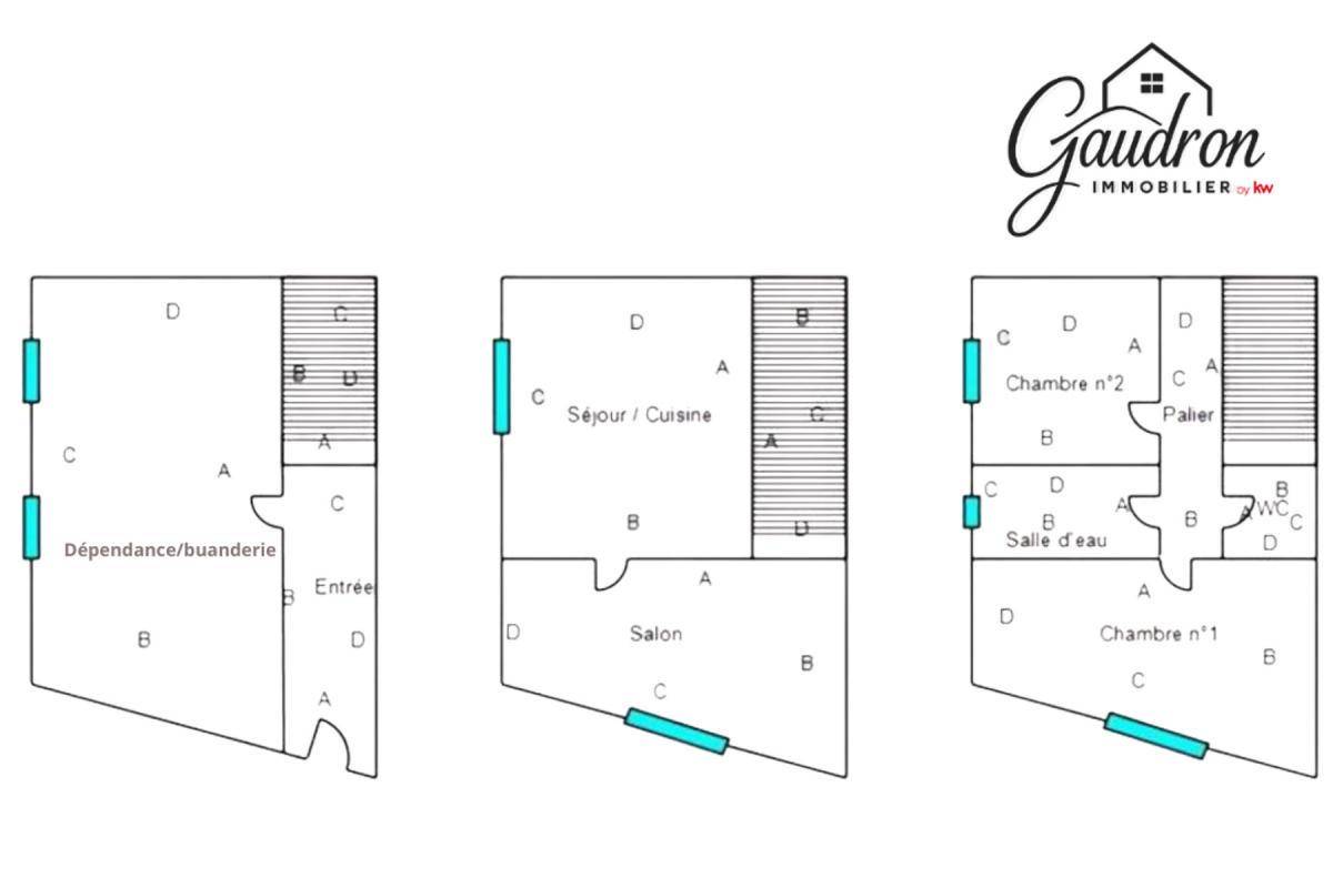 La maison se compose de trois niveaux. Au rez-de-chaussée, une entrée avec un atelier et un espace buanderie offre un volume pratique pour le rangement ou les projets de bricolage. Au premier étage, un séjour/cuisine et un salon accueillant permettent d’aménager un espace de vie convivial. Le deuxième étage abrite deux chambres, une salle d’eau et un WC, parfait pour créer un espace nuit confortable. Une cheminée à foyer ouvert complète l’ensemble et apporte une touche rustique et chaleureuse.