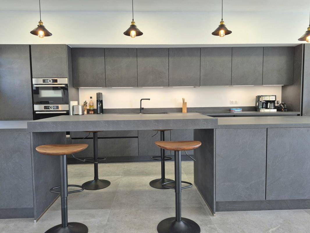 À l’intérieur, la pièce de vie séduit par son volume de 97 m², sa luminosité et la fluidité de sa circulation. La cuisine haut de gamme s’intègre discrètement, permettant autant la convivialité que la sophistication.
