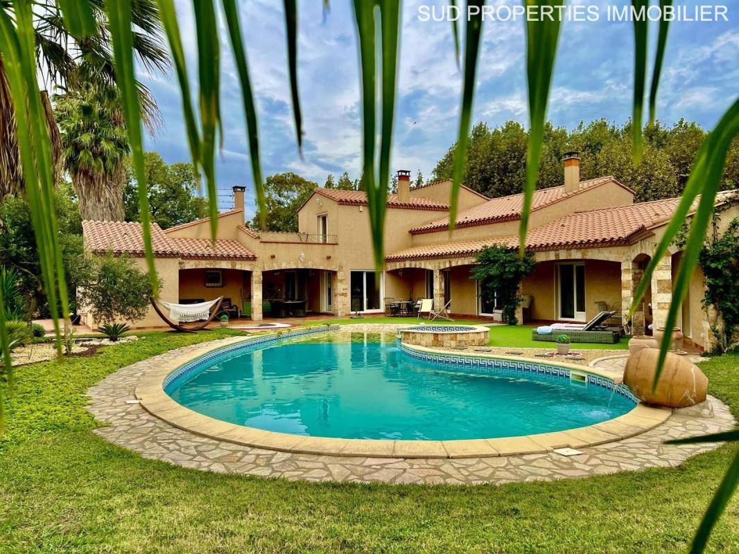 Pour visiter au plus vite cette propriété d’exception, appelez-nous :Eric Forges : 06*61*91*38*05Valentin Farines : 06*09*33*28*02Ce bien vous est présenté par SUD PROPERTIES IMMOBILIERRARE : dans le secteur très prisé de Saint-Cyprien, Les Capellans – plage de la Lagune, à quelques minutes à pied de la grande bleue et à proximité des commerces, cette belle et lumineuse villa méditerranéenne offre un cadre de vie idyllique.Cette propriété se distingue par sa qualité architecturale, son calme et sa luminosité. Edifiée sur un superbe jardin paysagé de 1800 m2, elle se développe majoritairement de plain-pied et offre une surface habitable de 300 m2 environ dont toutes les pièces sont tournées vers le jardin et la piscine lagon.Sa galerie extérieure, vous permettra de bénéficier d’une luminosité optimale tant en hiver qu’en été avec son exposition sud, vous protégeant de la tramontane.Un vaste hall de réception vous conduira à un confortable espace de vie composé d’un beau salon/séjour cathédrale avec sa cheminée-insert, un bureau, une cuisine dinatoire avec cheminée, une arrière cuisine totalement équipée. Le tout s’ouvrant généreusement sur l’extérieur, la terrasse, la cuisine d’été, la piscine et le pool house.Le cadre parfait de tous vos moments de convivialité !L’espace nuit, bien distinct, comprend deux suites parentales, chacune avec sa propre salle de bain, un grand dressing indépendant, offrant un confort absolu.Un majestueux escalier, vous entraînera à l’étage où vous bénéficierez d’un belle mezzanine surplombant le séjour, d’une salle d’eau, d’un wc, de deux spacieuses chambres avec rangements, dont l’une avec terrasse-solarium, idéal pour admirer la vue panoramique !Une maison d’amis indépendante et totalement fonctionnelle, vient compléter ce bien d’exception. Très belle piscine avec jacuzzi,Forage,Carport double, garage, plusieurs places de stationnement,Dépendances,Etat irréprochable.Saisissez cette chance unique de résider dans un cadre enchanteur alliant confort et prestige. Un lieu de vie tout simplement exceptionnel !Prenez dès à présent contact avec :Eric Forges – EI – RSAC 378 496 06106*61*91*38*05Valentin Farines – EI – RSAC 911 419 77806*09*33*28*02Dossier complet sur demande.