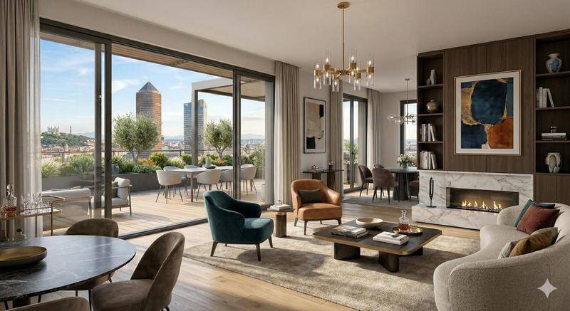 Appartement d’EXCEPTION 5 pièces de 116,10 m2 au DERNIER ÉTAGE, TRÈS BIEN agencé : entrée, WC INDÉPENDANT, salle de bain avec baignoire, buanderie, cellier, salle d’eau avec douche et WC, 4 GRANDES chambres avec rangement et MAGNIFIQUE pièce de vie LUMINEUSE avec une vue sur LYON de 38 m2 donnant sur une SPLENDIDE terrasse de 22,1 m2 EXPOSÉE SUD.