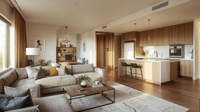 Cet appartement se compose d’une ENTRÉE fonctionnelle avec PLACARD ouvrant sur une PIECE DE VIE avec CUISINE OUVERTE.