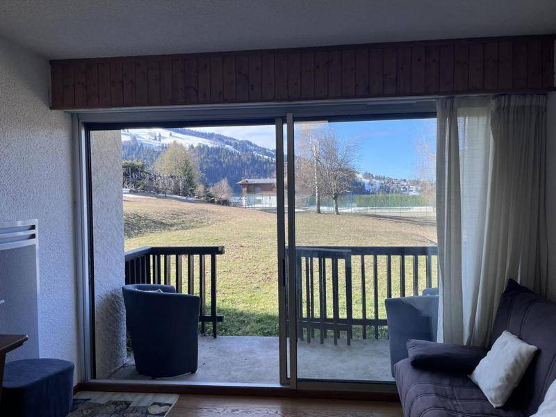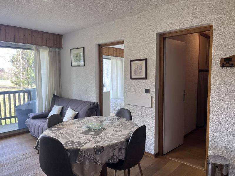 Ses 2 grandes baies vitrées exposées sud ouvrent sur une magnifique vue sur le Mont Charvin.