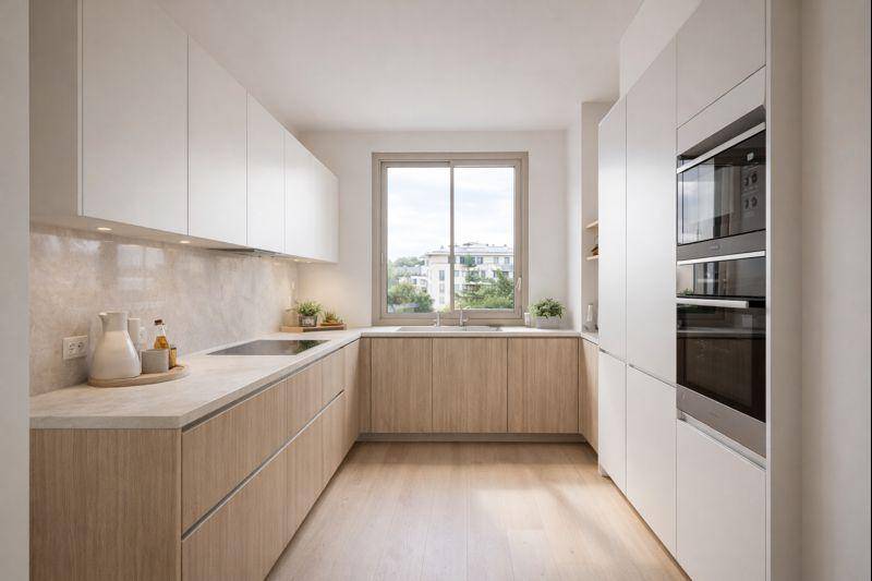 Le séjour s’ouvre sur un balcon de 7 m², véritable prolongement de la pièce de vie.