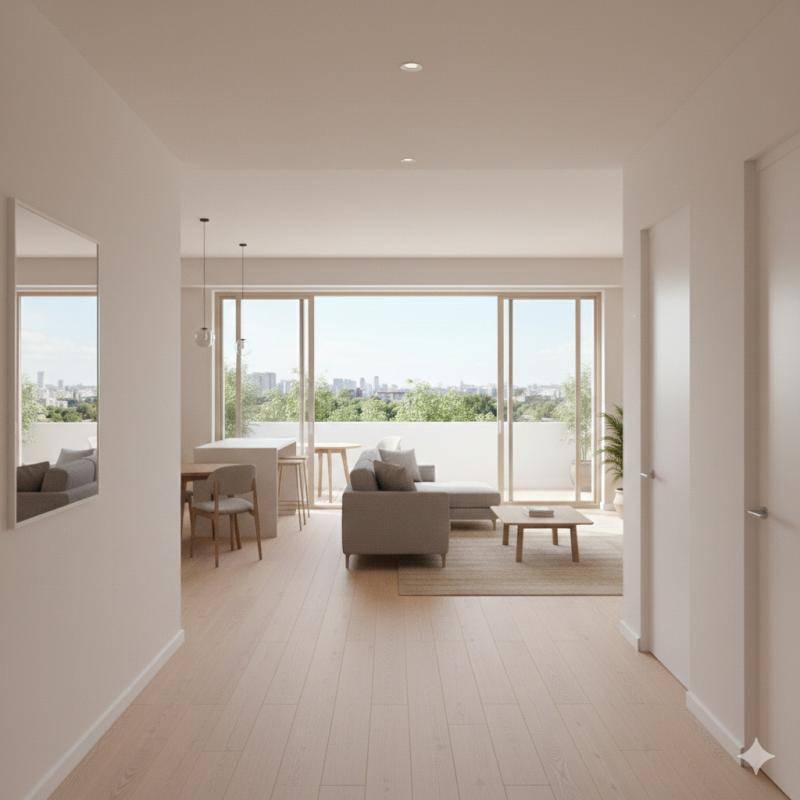 Le balcon prolonge la pièce de vie et apporte une vraie ouverture. Séjour cuisine lumineux. Balcon exploitable. Distribution claire. Cuisine ouverte fonctionnelle. Deux chambres séparées. Bureau indépendant idéal télétravail.