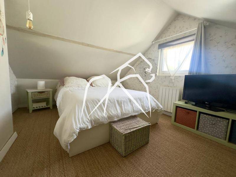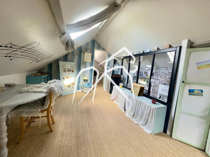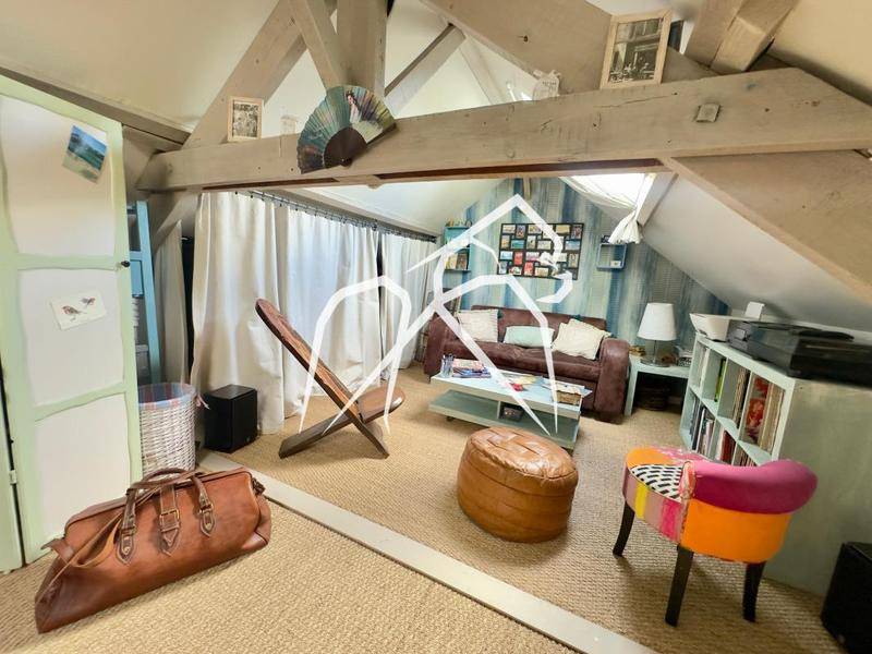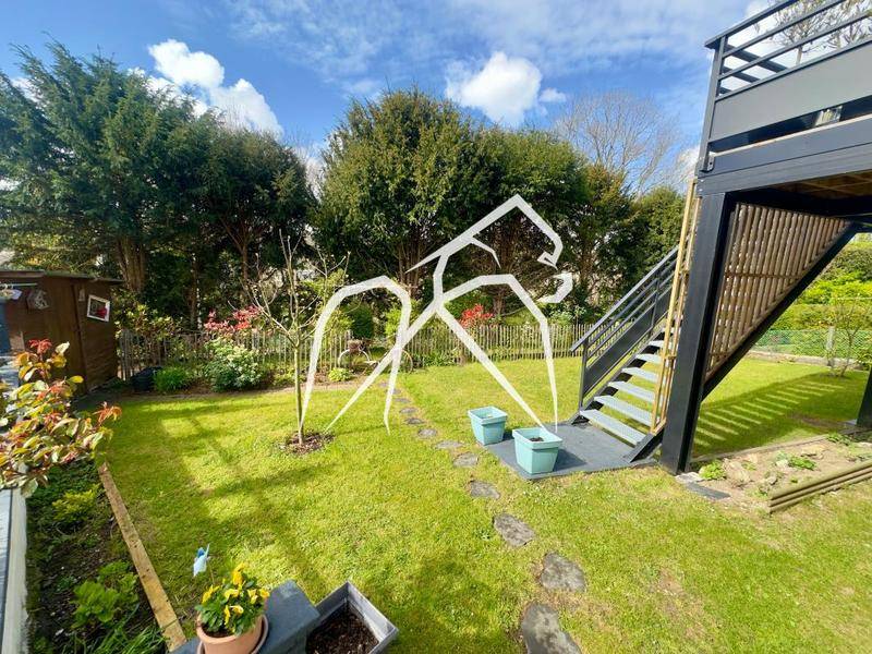 Surface habitable : 103m² (77,49m2 carrez) | Chambres : 2 (une en rdc) + un grand palier | WC : 1 | Salles de douches : 1 | Cuisine indépendante : 1 | Séjour salon : 1 | Jardin : 1 | Sous-sol complet : 1