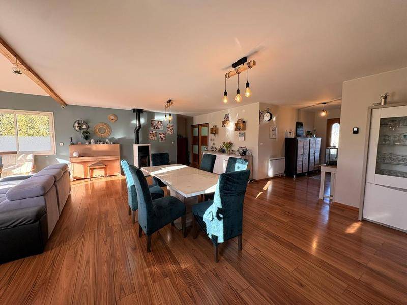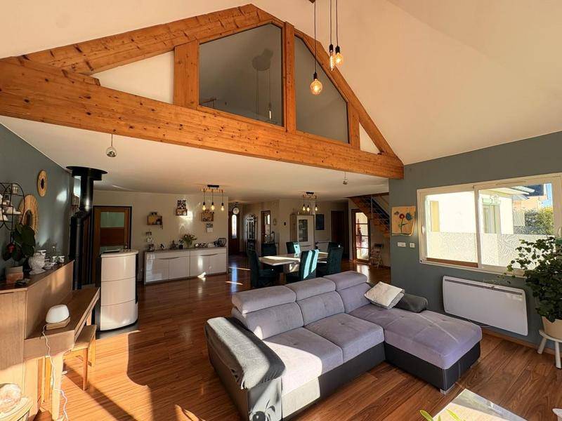 Surface habitable : 193 m² | Chambres : 5 | Salle de bains : 1 | WC : 1 séparé | Jardin | Terrasse | Double garage | Parking : 2 places | Fibre optique | Année : 2006 | Poêle à granules & chauffage électrique | Double vitrage | Taxe foncière : 2168 € | Prix : 385 000 € | DPE du 05/09/2025