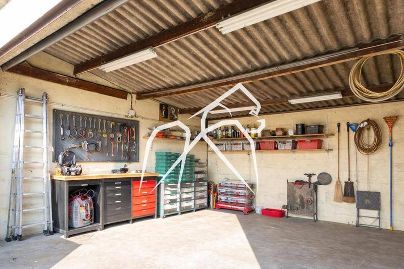 – Grand garage fermé (2 véhicules) avec atelier