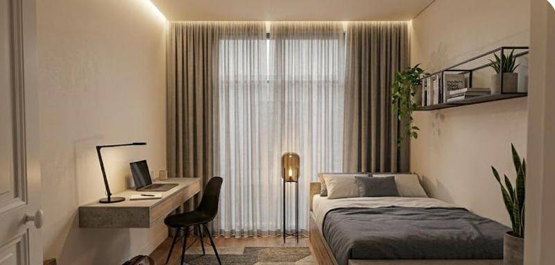 Il se compose d’une entrée, d’un vaste séjour avec cuisine ouverte, de deux chambres confortables, d’un espace modulable pouvant devenir une troisième chambre, d’une salle de bains ainsi que d’un wc indépendant.