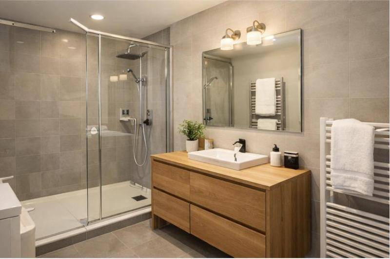 L’appartement propose une belle pièce de vie avec séjour et cuisine ouverte, facilement modulable pour créer un espace nuit séparé. La loggia prolonge l’espace et apporte luminosité et confort au quotidien