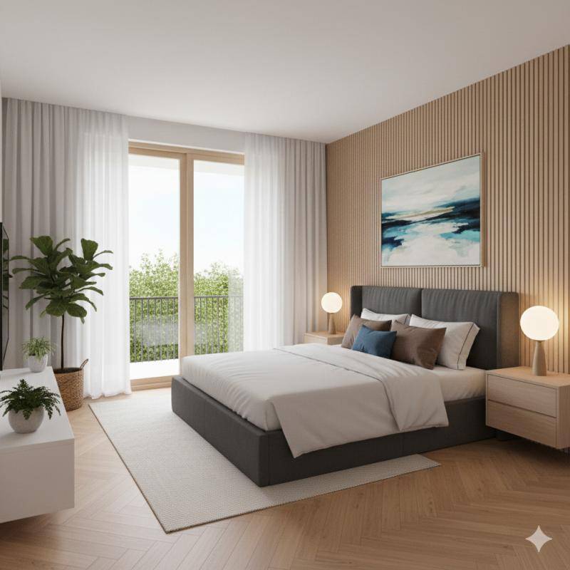 L’espace nuit se compose de deux chambres bien agencées, d’une salle de bain fonctionnelle, d’un WC indépendant et de rangements optimisés.