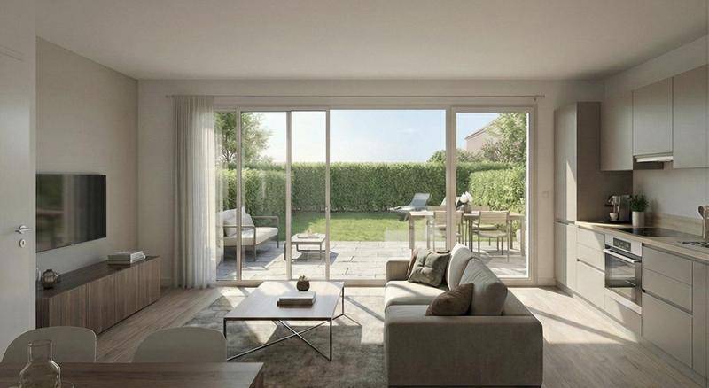 . Séjour/cuisine lumineux exposé SUD OUEST donnant accès à un vaste espace extérieur – 10 m2 de TERRASSE + 30 m2 de JARDIN