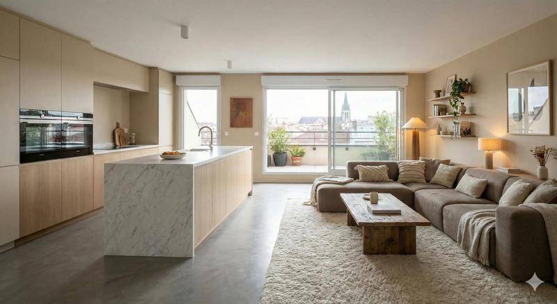 . Grand Séjour/cuisine à UNE TERRASSE de 15m2,