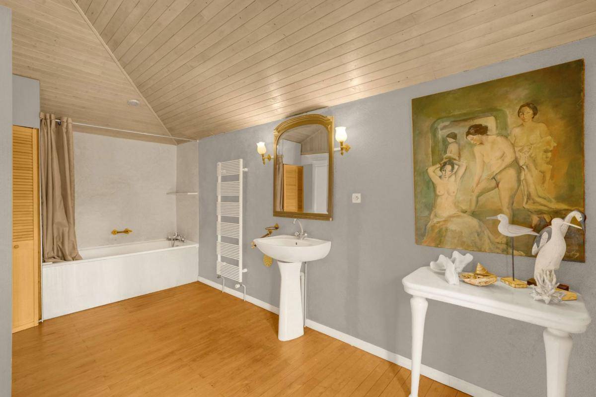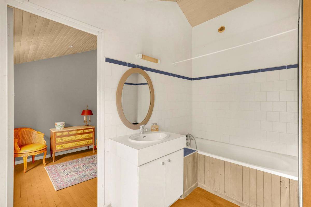 Au rez-de-chaussée, vous découvrirez une pièce de vie de 45 m² avec cheminée ancienne, une salle à manger lumineuse donnant directement sur le jardin, une cuisine aménagée ainsi qu’un bureau.