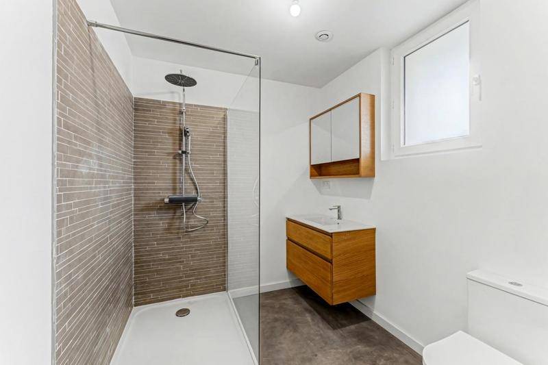 Ce premier niveau dispose également d’une première chambre pouvant être aussi bien une chambre d’enfant ou un bureau, et d’une salle d’eau avec wc.