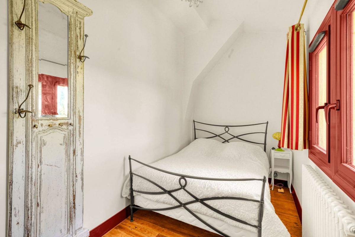 À l’étage, vous trouverez 3 grandes chambres entre 14 et 16m2, dont 1 parentale avec salle de bain et WC et un bureau/chambre d’ami.