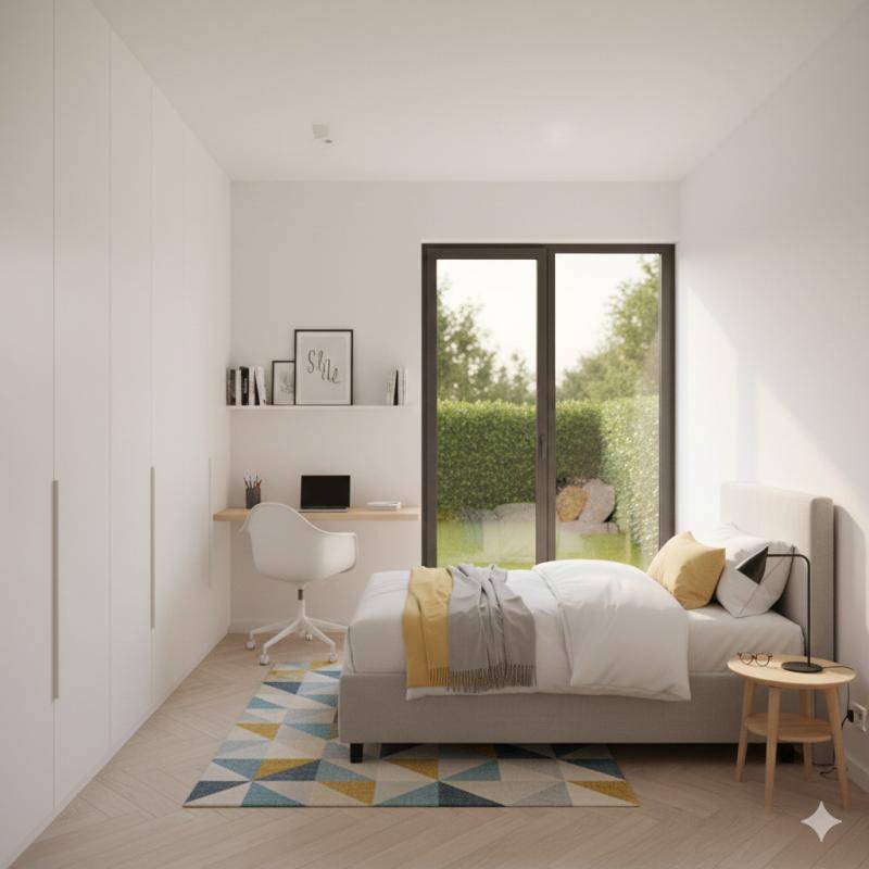 La pièce de vie avec cuisine ouverte s’ouvre sur un jardin privatif d’environ 50 m², un espace extérieur rare sur le secteur, idéal pour profiter des beaux jours ou recevoir.