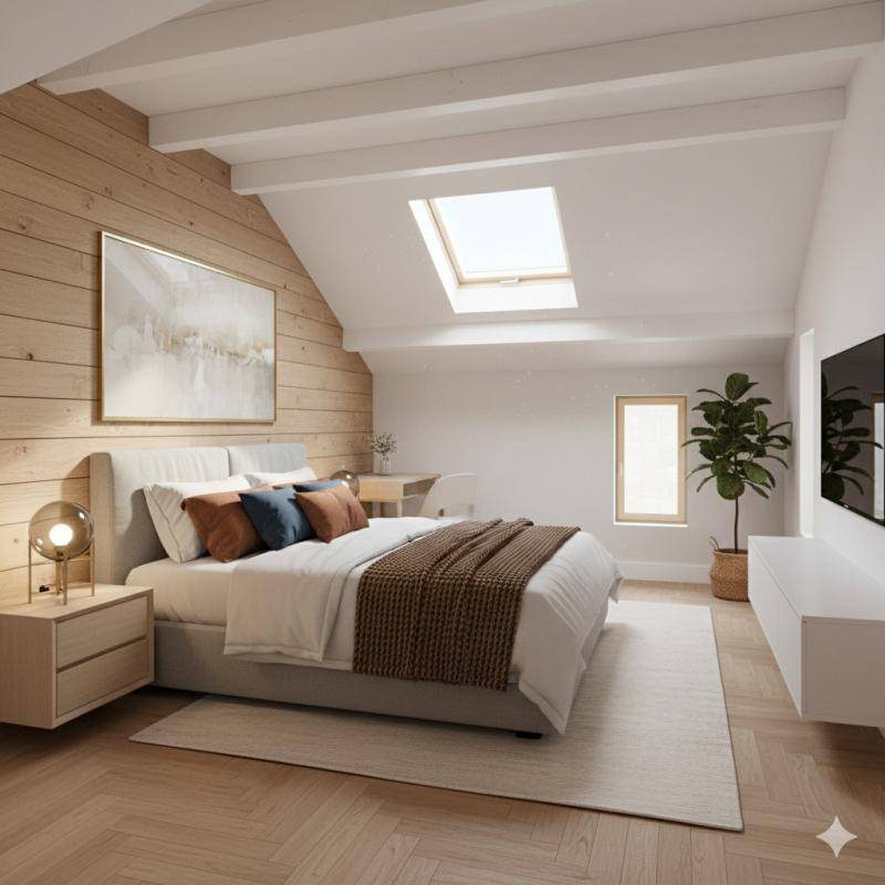 Pensée avec des prestations haut de gamme, elle se distingue par ses volumes équilibrés, ses circulations fluides et un agencement idéal pour la vie quotidienne. L’étage nuit accueille de belles chambres lumineuses, rangements intégrés, dressing, salle de bain moderne et velux apportant caractère et clarté.