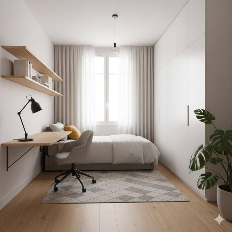 L’agencement offre une séparation fonctionnelle entre l’espace jour et l’espace nuit.