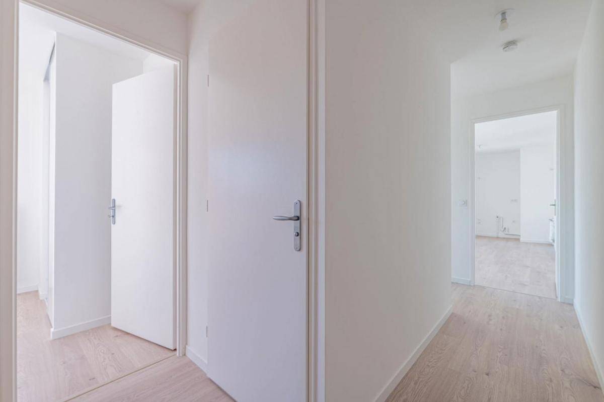 Le vaste séjour avec cuisine ouverte (à aménager selon vos goûts) de plus de 25 m² s’ouvre sur une loggia exposée sud-est, idéale pour profiter des beaux jours. Deux chambres confortables (11,8 m² et 10,3 m²), une salle de bains équipée avec sèche-serviettes et un WC indépendant complètent l’agencement.