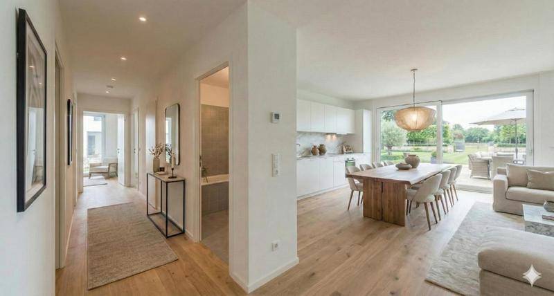 La circulation est fluide, avec une séparation claire entre l’espace jour et l’espace nuit, favorisant un confort d’usage au quotidien.
