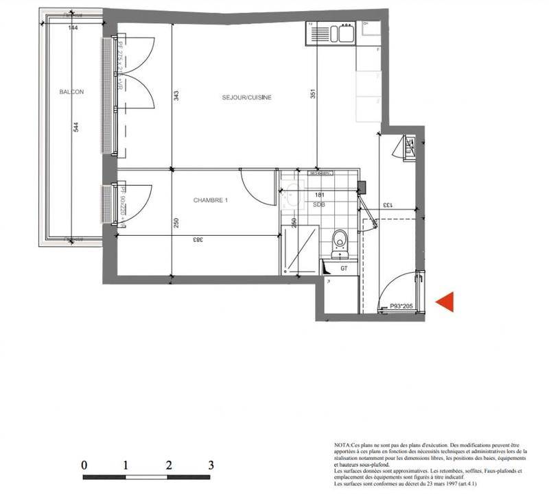 Nous vous proposons un 2 pièces de 40.15m² qui offre un séjour avec cuisine US ouvrant sur un grand balcon une chambre ouvrant également sur le balcon, une salle d’au avec wc.