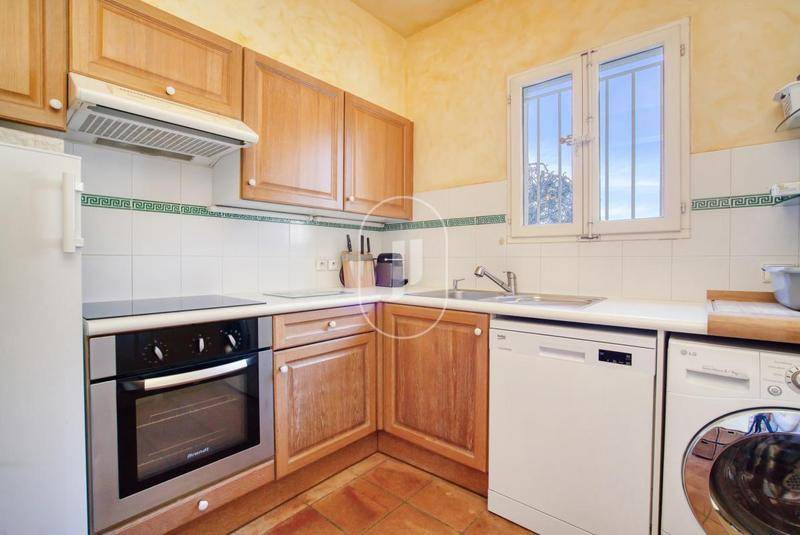 Cette maison séduit dès l’entrée avec sa terrasse fermée au nord, prévue pour garer une voiture, elle se complète d’un garage à vélo. La villa se compose d’une cuisine équipée, d’une belle pièce de vie lumineuse, exposée plein sud, avec cheminée, elle s’ouvre sur la terrasse et la piscine pour profiter des beaux jours en extérieur. Une salle d’eau avec WC complète ce niveau.