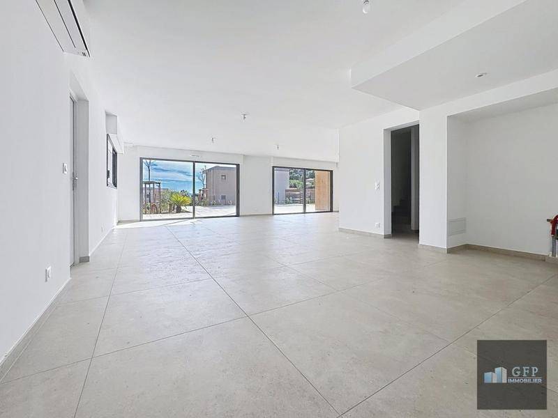 GFP Immobilier vous propose, dans le quartier très recherché de La Fossette au Lavandou, à proximité des plages et dans un environnement naturel privilégié, cette villa contemporaine 5 pièces d’environ 170 m² offrant un cadre de vie rare sur la Côte d’Azur. Implantée sur un terrain d’environ 823 m², la propriété bénéficie d’une vue mer et séduit par ses volumes généreux ainsi que par sa belle luminosité grâce à de larges baies vitrées ouvrant sur les espaces extérieurs. Le séjour spacieux avec cuisine ouverte se prolonge vers les terrasses, le jardin et la piscine privative, permettant de profiter pleinement du climat méditerranéen. La villa propose 4 chambres, dont une suite, ainsi que plusieurs salles d’eau modernes équipées de douche à l’italienne, meuble vasque et WC suspendus. Les prestations sont contemporaines et de qualité : carrelage grand format, menuiseries aluminium double vitrage, volets roulants électriques centralisés, chauffage et climatisation par système multi-split, production d’eau chaude par chauffe-eau thermodynamique et garage individuel fermé avec porte motorisée. Située dans une résidence confidentielle composée de seulement huit villas, la propriété offre calme, intimité et un emplacement privilégié à quelques minutes des plages, du centre du Lavandou et des commodités. Une opportunité rare d’acquérir une villa neuve avec vue mer au Lavandou, idéale pour une résidence principale, secondaire ou un investissement patrimonial sur la Côte d’Azur. Bien présenté par GFP Immobilier – votre agence immobilière au Lavandou et à Bormes-les-Mimosas.