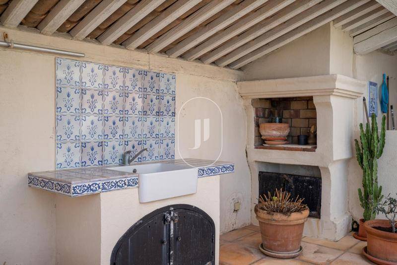 Ce bien d’exception dispose d’une piscine privée, entourée de plages ensoleillées propices à la détente. Sur la terrasse, un auvent abrite le local technique de la piscine ainsi qu’un espace de rangement pratique pour les coussins et matelas d’extérieur. Pour une intimité optimale, trois stores électriques sont installés sur la façade principale.