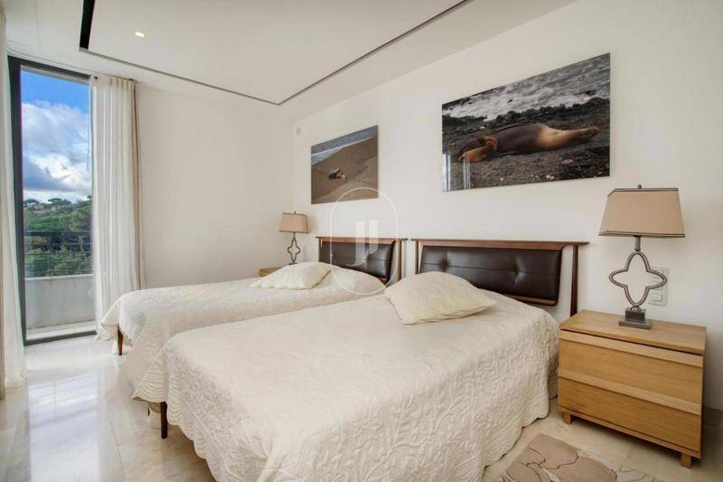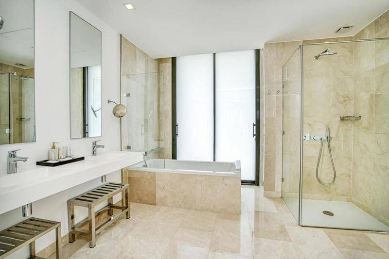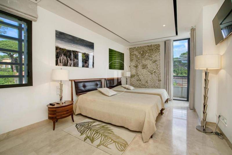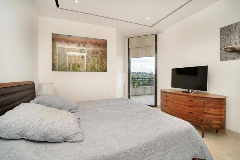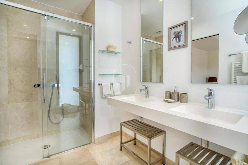 L’appartement, en duplex et accessible par ascenseur, se compose d’une entrée, d’un vaste séjour de 120 m², d’une cuisine et de 5 chambres disposant chacune de sa salle de bains / d’eau. Les terrasses de 133 m² et 248 m² offrent intimité et confidentialité.