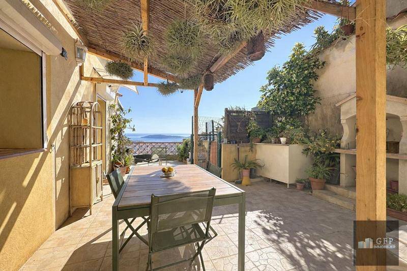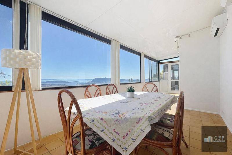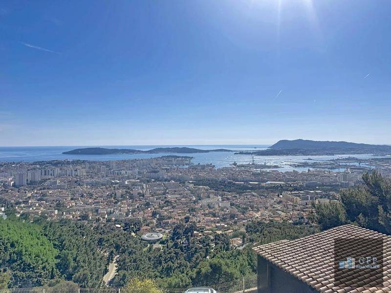 Vue mer panoramique exceptionnelle – Maison dominante sur le Faron GFP Immobilier vous propose, sur les hauteurs de Toulon, dans un secteur recherché du Faron, cette maison individuelle bénéficiant d’une vue panoramique spectaculaire sur la rade de Toulon et la ville. En position dominante, dans un environnement calme et préservé, ce bien offre un cadre de vie rare, alliant tranquillité, luminosité et proximité du centre-ville, accessible rapidement aussi bien côté est que côté ouest. La maison, édifiée sur deux niveaux, développe environ 97 m² habitables et une surface au sol totale de 177 m² environ. Elle se compose d’un séjour spacieux et lumineux ouvert sur une vue imprenable, d’une cuisine indépendante, de trois chambres, d’un bureau, d’une salle de bains et de sanitaires, ainsi que de plusieurs espaces annexes comprenant notamment une véranda, une cave, une mezzanine et une annexe. Les volumes sont fonctionnels et permettent différentes possibilités d’aménagement selon les besoins. Implantée sur un terrain d’environ 1 400 m², la propriété offre un environnement naturel typique du Faron avec la présence de plusieurs arbres fruitiers, notamment des citronniers, figuiers, amandiers et oliviers sauvages. Le terrain, en position dominante, permet de profiter pleinement de la vue tout en restant facile d’entretien. La maison est équipée d’un système de chauffage par pompe à chaleur de type climatisation réversible, de menuiseries majoritairement en double vitrage et d’une production d’eau chaude par ballon électrique à accumaltion (300 litres). Il s’agit d’une maison individuelle hors copropriété. Ce bien se distingue par sa vue exceptionnelle sur la rade de Toulon, son environnement calme ainsi que par sa situation idéale, dominante tout en restant proche de la ville. Contactez GFP Immobilier pour plus d’informations ou organiser une visite. GFP Immobilier vous accompagne dans tous vos projets immobiliers. VISITE VIRTUELLE SUR DEMANDE.