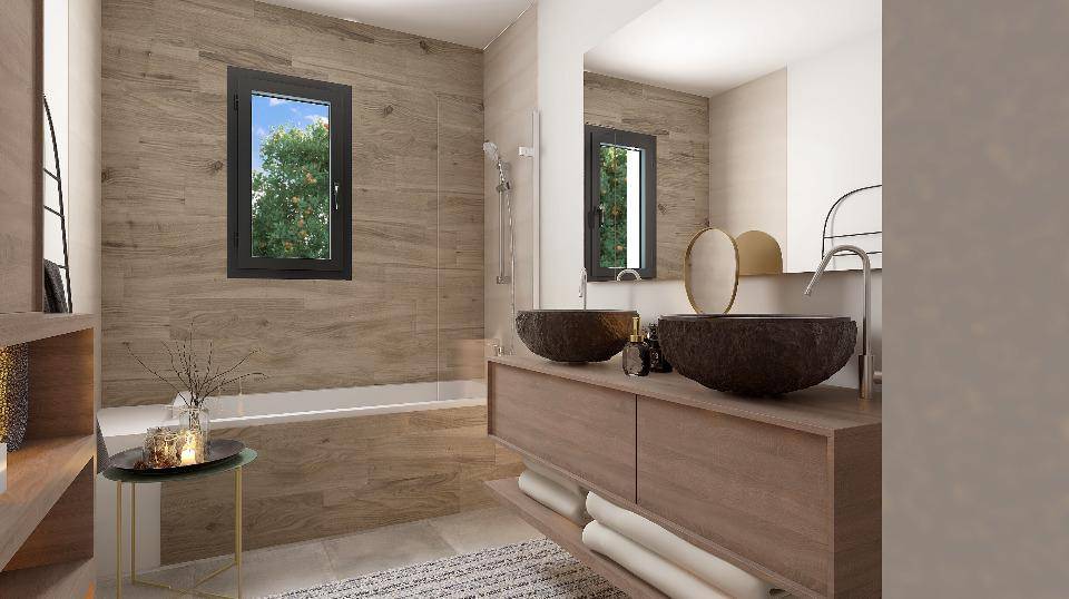 Construction conforme aux dernières normes RE2020 (basse consommation) sur une base de mur en biobric revêtu d’un enduit (avec bichromie ou non) selon la couleur souhaitée.