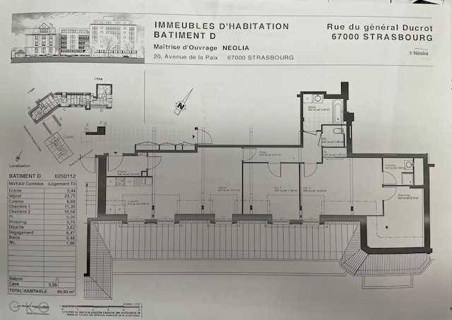 Situé Rue du Général Ducrot à STRASBOURG (proche Parc des Contades) cet appartement T3 de 90m2 se compose d’une suite parentale (chambre, salle d’eau et dressing),1 sdb avec baignoire, espace séjour/cuisine de 30m2, espace de rangement à l’entrée.