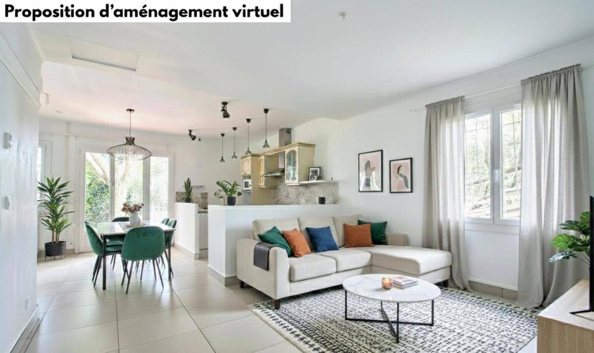 Cette maison se compose : au rez-de-chaussée d’une suite parentale avec salle d’eau, d’un séjour avec cuisine ouverte et équipée d’une plaque et hotte, ainsi que d’un accès direct au jardin. À l’étage, trois chambres, une salle de bain, un salon avec terrasse et de nombreux rangements.