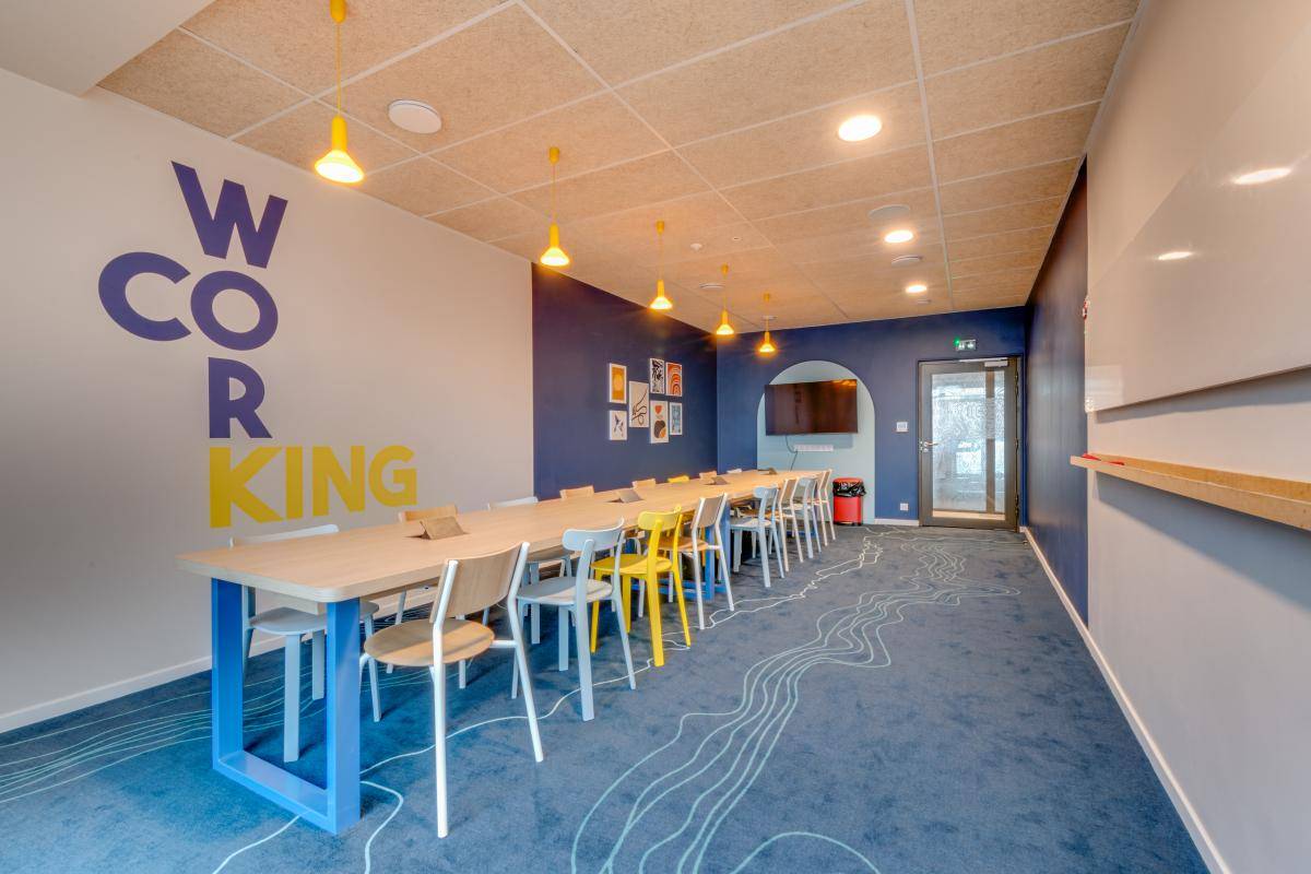 À l’intérieur, la résidence se pare d’une décoration conviviale et chaleureuse avec des espaces partagés comme une salle de détente, un espace cafétéria avec une Epicoop, des salles de coworking, une salle fitness et une laverie connectée.