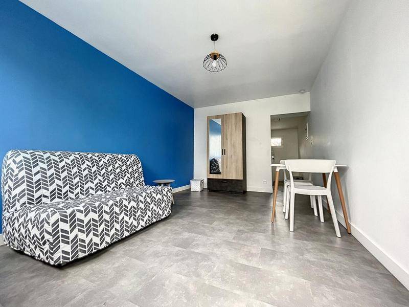 Découvrez ce studio meublé composé d’une pièce de vie, un coin kitchenette (plaques et réfrigérateur), une salle d’eau avec WC.