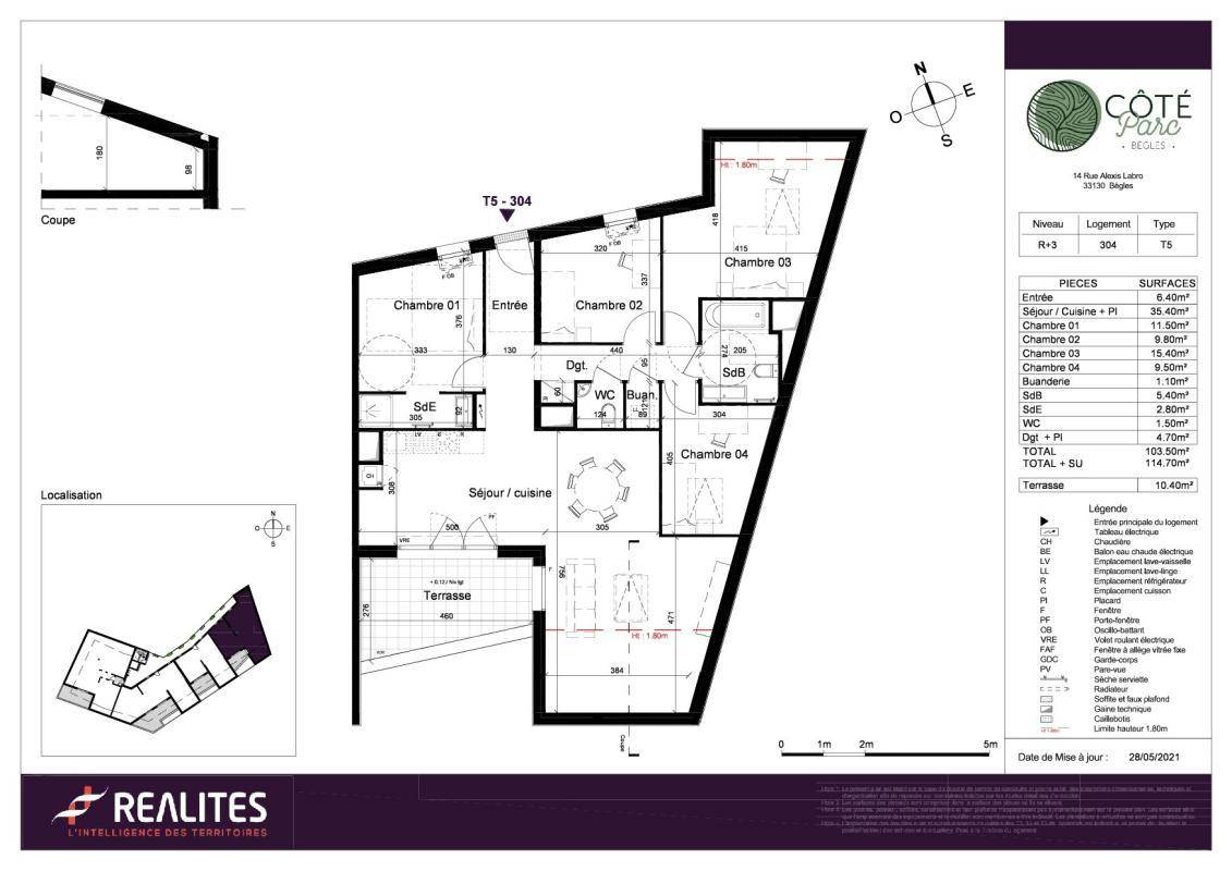 TRES BEAU ET SPACIEUX T5 – 4 CHAMBRES + SEJOUR – BEGLES PROCHE DU CENTRE ET DE TOUTES LES COMMODITES (école, collège, moyens de transports en commun).