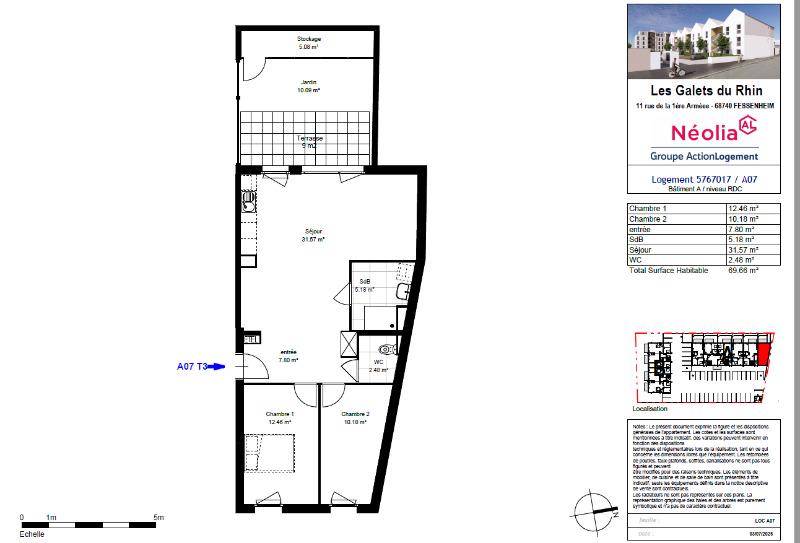 À Fessenheim (68740), 11A rue de la 1ère Armée, Les Galets du Rhin, découvrez ce T3 neuf de 69,66 m² situé en rez-de-chaussée avec jardin et accessible aux personnes à mobilité réduite .
