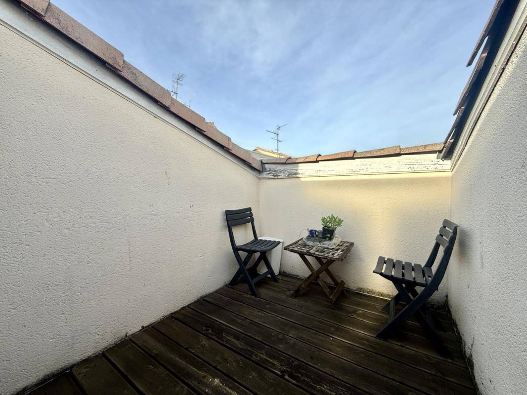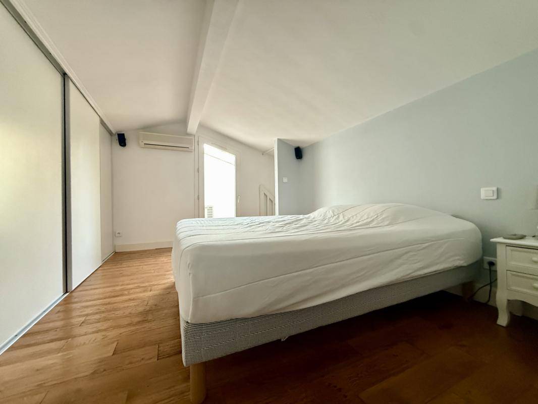 L’appartement se compose d’un séjour chaleureux avec cuisine américaine équipée, ouvrant sur un balcon exposé sud, d’une salle de bain et d’une salle d’eau pour chaque chambres, d’un WC indépendant, ainsi que de deux chambres avec rangements intégrés, dont l’une bénéficie d’un accès direct à une grande terrasse privative sur les toits.