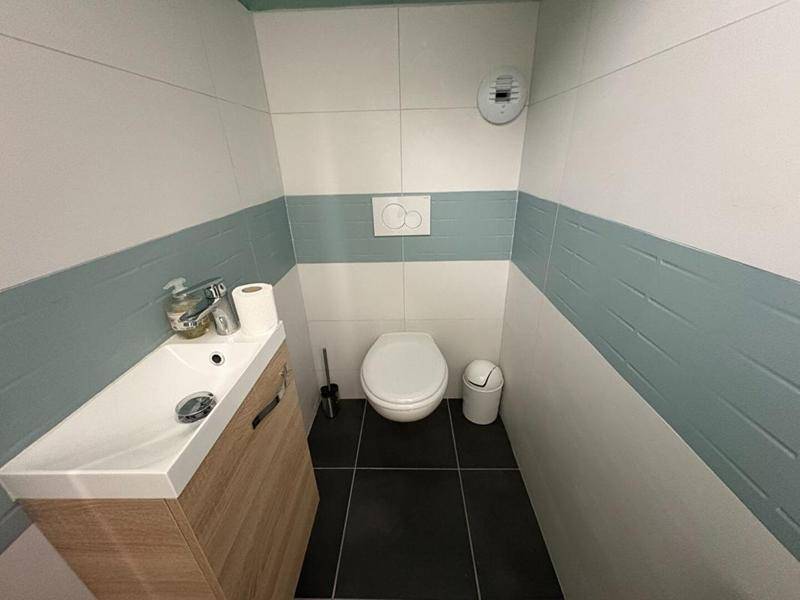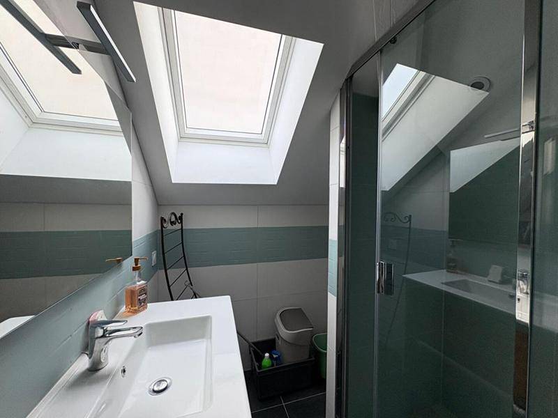 une salle d’eau équipée d’une douche, un WC séparé.