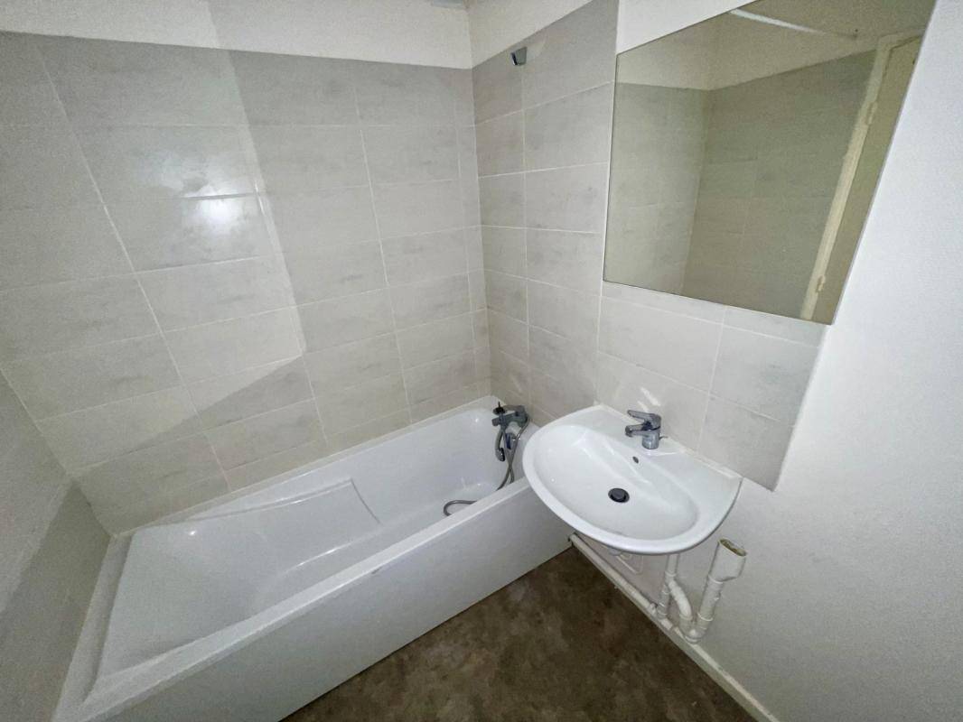 Vous profitez également d’une salle de bain équipée d’une baignoire et là aussi d’une arrivée et sortie d’eau.