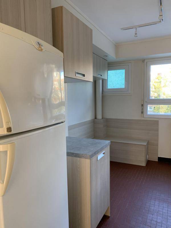 Un appartement T4 comprenant une entrée avec placard, un double séjour/salon avec loggia, une cuisine aménagée et équipée, trois chambres, une salle de bains, un WC et un cabinet de toilettes.