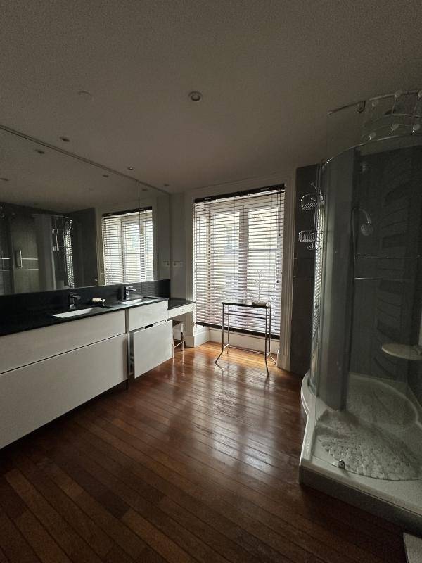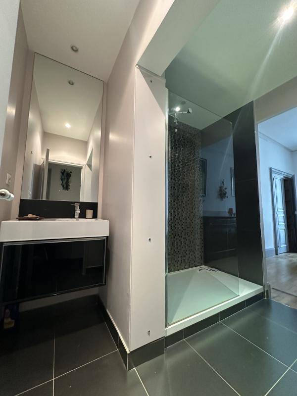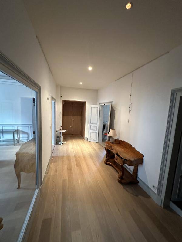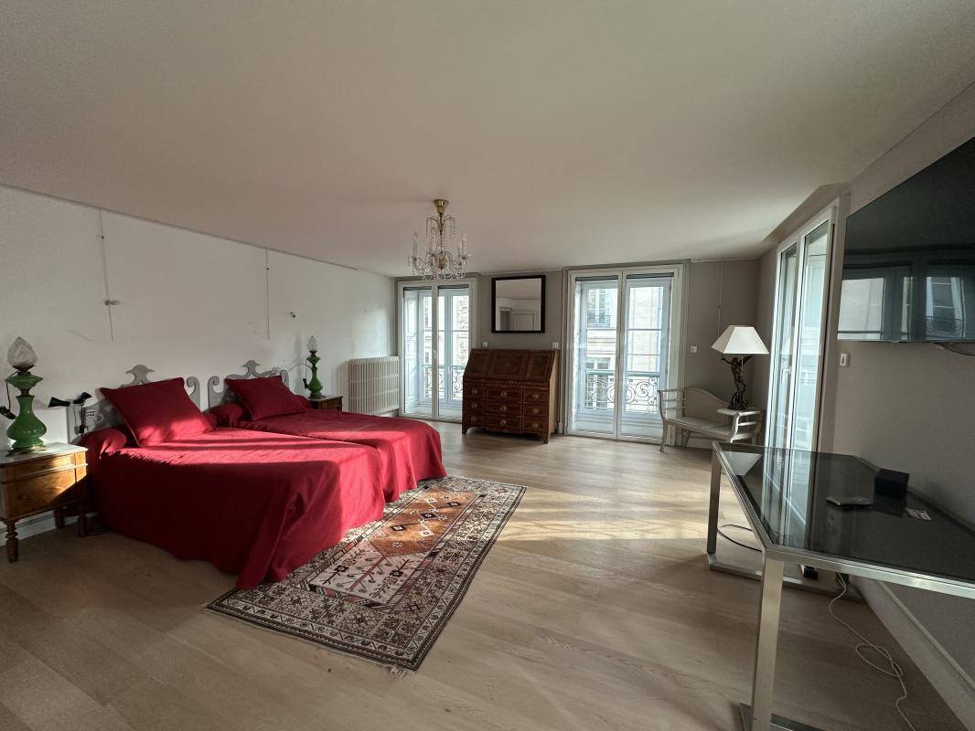 Un appartement spacieux de type 3 meublé de 138m² habitables (144.43m² au sol) comprenant une entrée entrée, une salle à manger avec cuisine aménagée et équipée, un salon-séjour, un premier espace nuit avec WC, une salle d’eau et une chambre et dressing et un deuxième espace nuit avec un grand dressing, une grande chambre de 30m² et une salle d’eau avec WC.