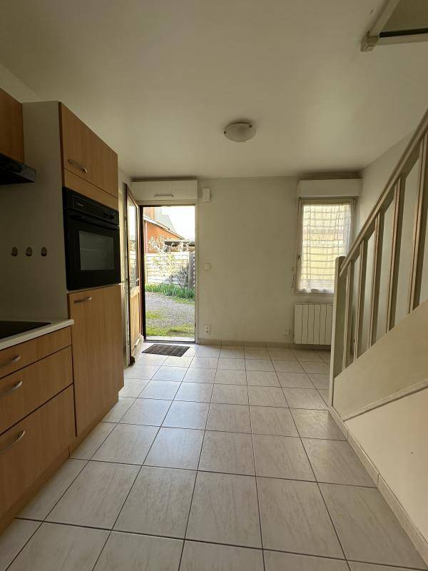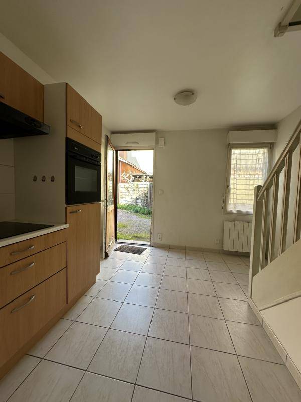Un appartement type maisonnette T2 duplex en rez-de-chaussée comprenant au rez-de-chaussée une pièce de vie avec coin cuisine, un WC et à l’étage une espace chambre et une salle d’eau.