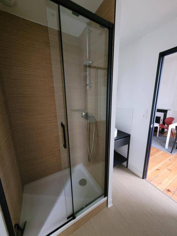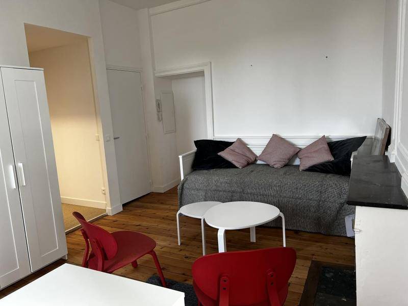 Studio meublé entièrement rénové de 25.71m² comprenant, une pièce de vie avec cuisine aménagée et équipée (frigo, lave-vaisselle, micro-ondes, plaques de cuissons), une salle d’eau et un WC