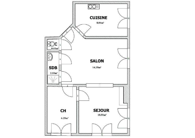 Appartement -F3-meubléConstruction années 1900Entrée, séjour, WC séparés, cuisine équipée, salle…