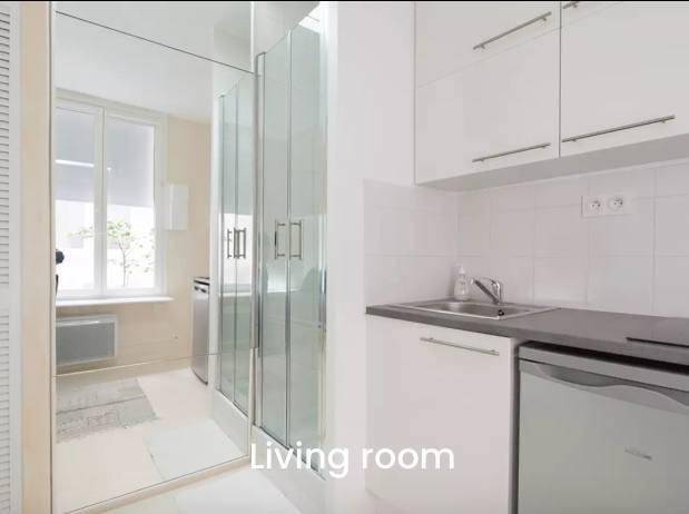 Vous avez une cabine de douche vitrée directement dans le studio. L’appartement dispose également d’un lave-linge et d’un sèche-linge privatifs.