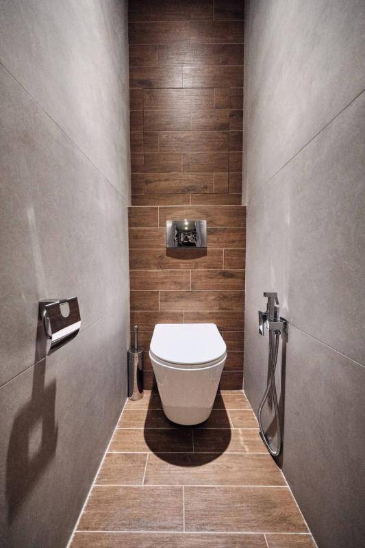 Salle de bain : Salle de bain avec douche à l’italienne, meuble vasque, miroir éclairé, machine à laver intégrée et sèche-serviettes.