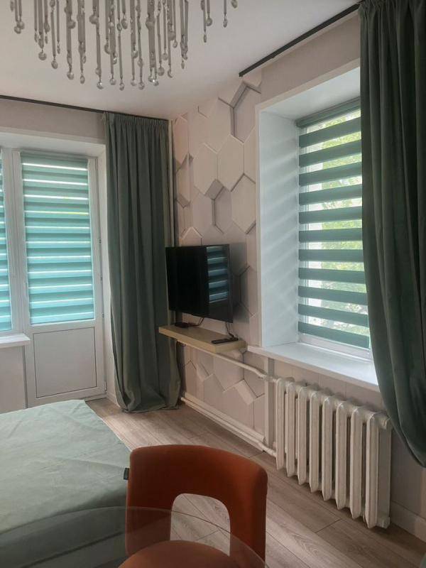 L’appartement se compose d’une pièce principale bien organisée, avec un lit double, une télévision murale installée face au lit, un espace repas avec table ronde et chaises, ainsi qu’un mobilier moderne et fonctionnel. Un grand dressing séparé offre un bel espace de rangement.