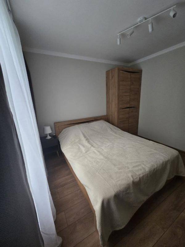 La chambre est indépendante, équipée d’un lit double et d’une armoire.